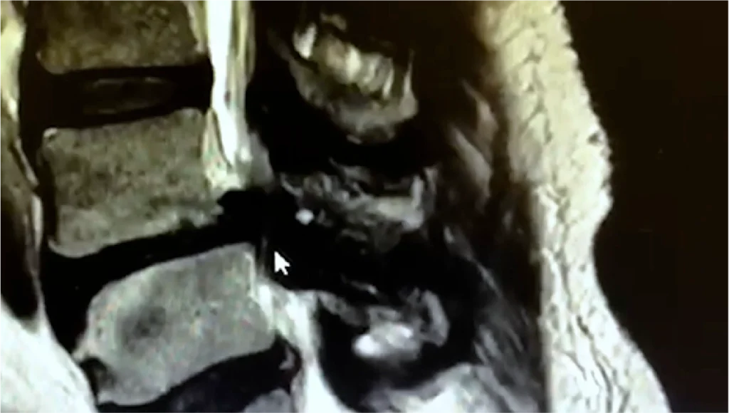Introdução Neste caso clínico observa-se um aperto significativo do canal lombar entre a quarta e a quinta vértebra (L4–L5). O estreitamento não é causado apenas pelo disco intervertebral. Está associado a material discal extruído, hipertrofia do ligamento amarelo e a uma listese entre L4 e L5, responsável pelo desalinhamento vertebral. Os restantes níveis encontram-se preservados. […]